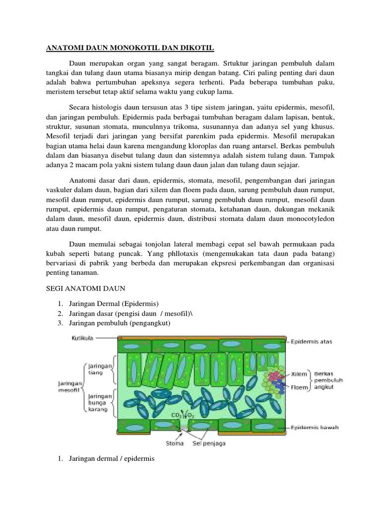 Lalu, apa perbedaan struktur batang dikotil dan monokotil ? Laporan praktikum anatomi tumbuhan_ struktur anatomi daun dikotil dan monokotil_pendidikan biologi universitas muhammadiyah sukabumifull description. Struktur anatomi daun bagian luar. Sepintas tampak adanya persamaan antara struktur daun dan batang, apakah memang demikian?